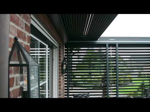Sunshield biedt verschillende typen louvre daken, met gesloten lamellen zijn ze waterdicht. Hemelwater wordt naar een kant geleid en daar opgevangen in een goot. De waterafvoer loopt via de poten.